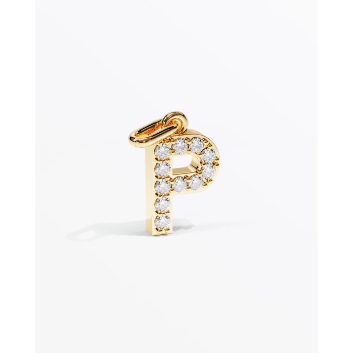 Bogstav P med 11 sten. Alle sten kan designes individuelt. Stenstørrelse er 1,5 mm. Højde er 10 mm. Dybde er 2,6 mm.
