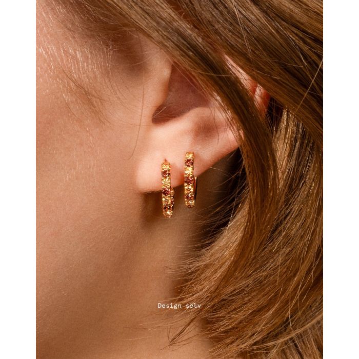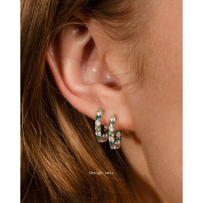 Huggie ørering med 8 sten foran samt 4 sten på den bageste inderside, så de kan ses fra fra fronten og siderne.