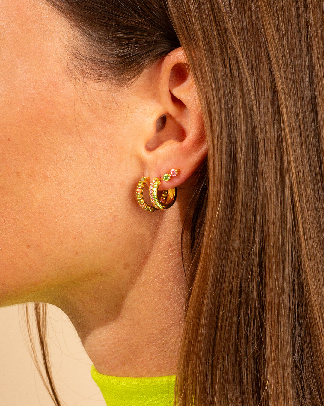 Klassisk stud ørering med 2 sten. Giver et forskelligt udtryk alt efter hvordan den vendes.
