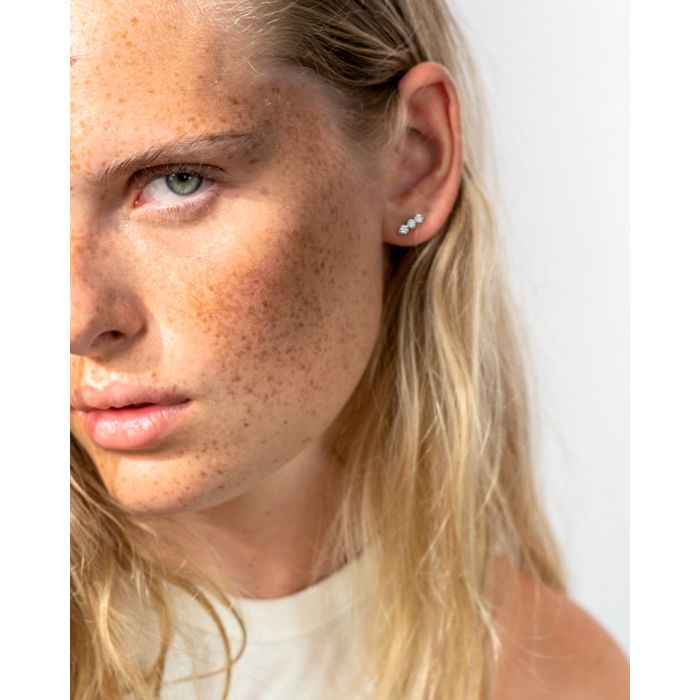 Klassisk stud ørering med 3 sten i række. Udtrykket kan varieres alt efter retningen man vender den.