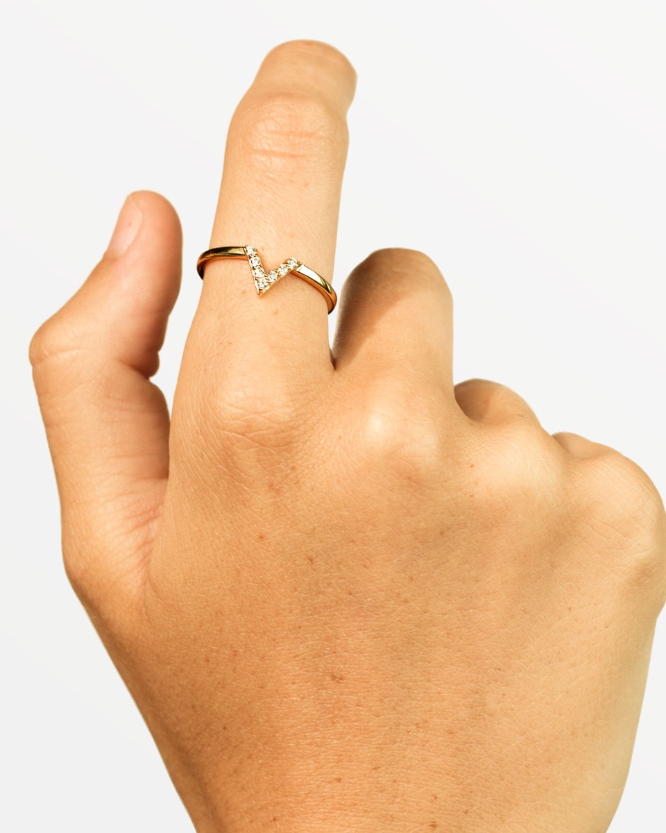 Ring med 7 sten sat i V-form, som giver en trekant.