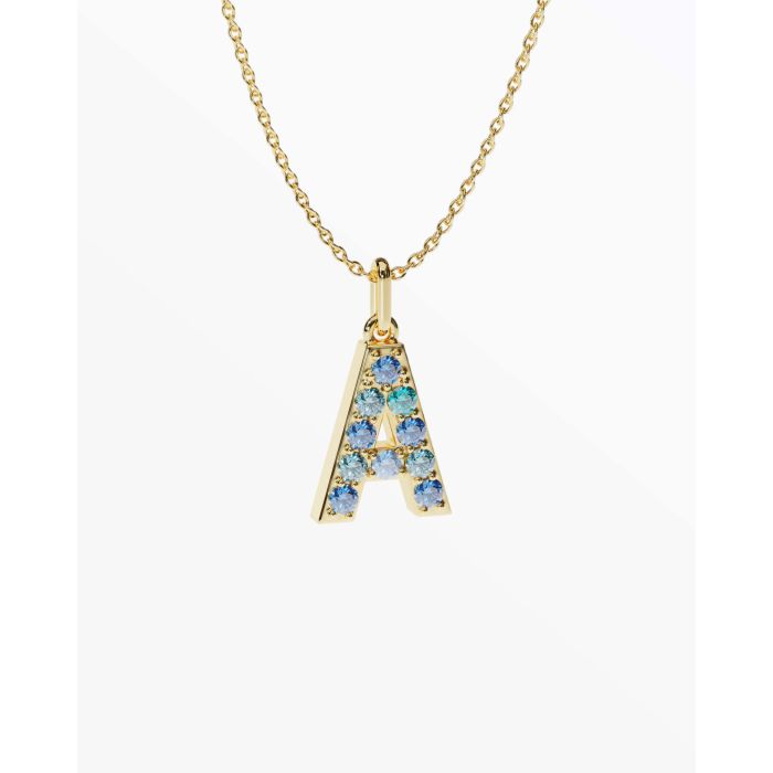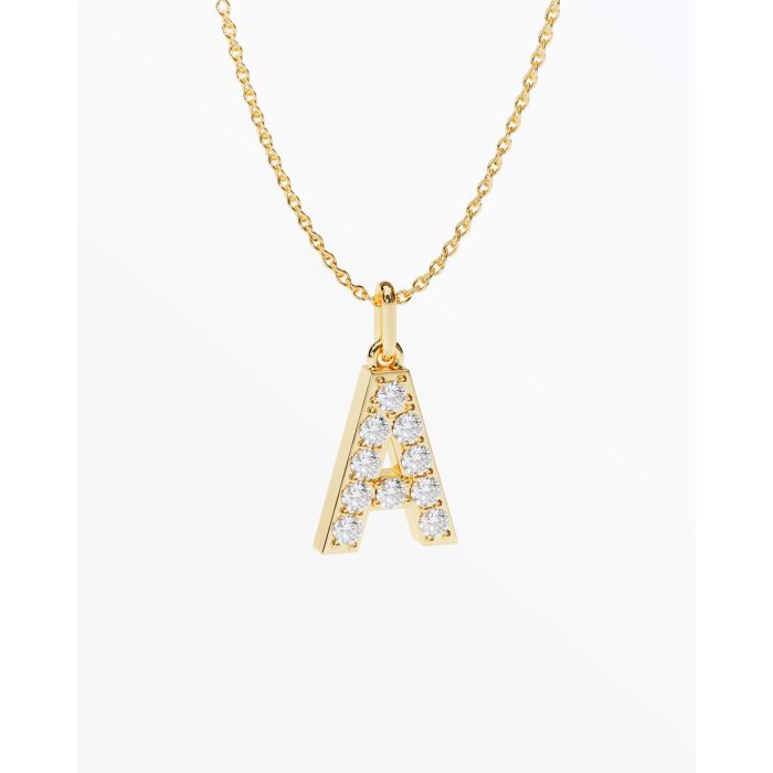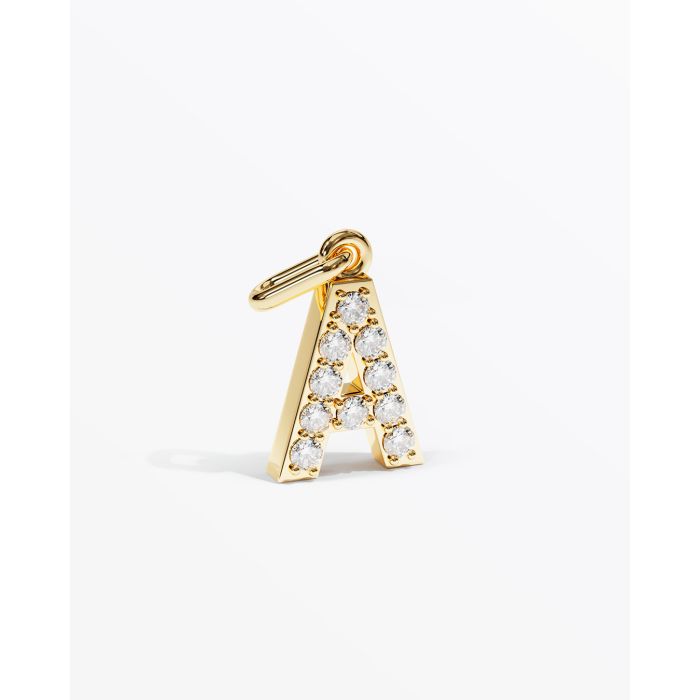 Letter A with 10 stones. All stones can be designed individually. Stone size is 1.5 mm. The height is 10 mm. Depth is 2.6 mm.