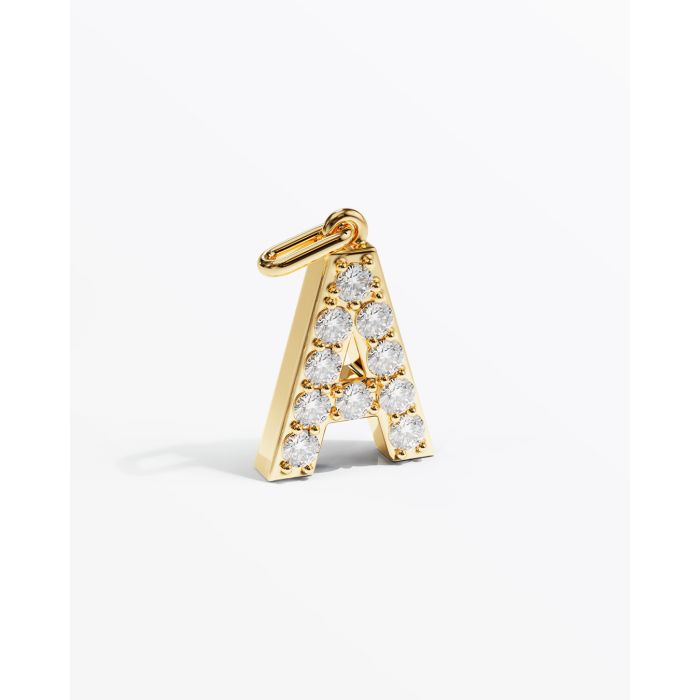 Letter A with 10 stones. All stones can be designed individually. Stone size is 2 mm. The height is 15 mm. Depth is 3.5 mm.