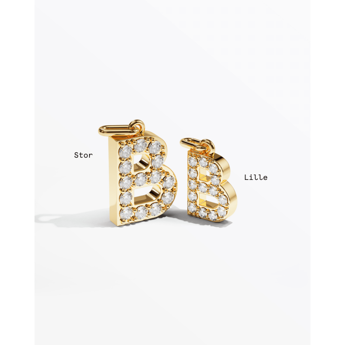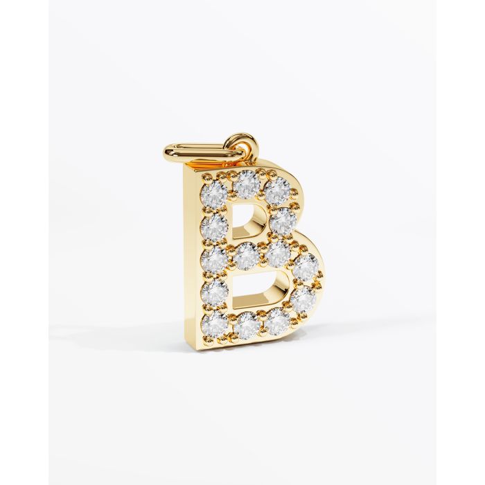 Letter B with 14 stones. All stones can be designed individually. Stone size is 2 mm. The height is 15 mm. Depth is 3.5 mm.