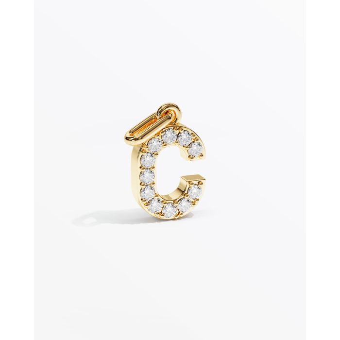 Letter C with 11 stones. All stones can be designed individually. Stone size is 1.5 mm. The height is 10 mm. Depth is 2.6 mm.