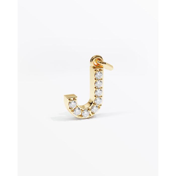 Letter J with 8 stones. All stones can be designed individually. Stone size is 1.5 mm. The height is 10 mm. Depth is 2.6 mm.