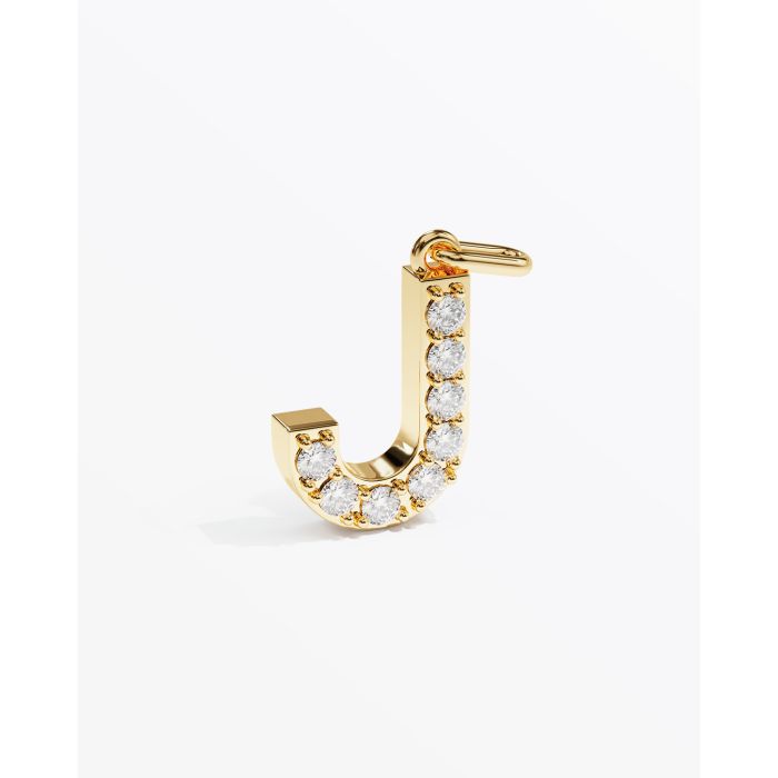 Bogstav J med 8 sten. Alle sten kan designes individuelt. Stenstørrelse er 2 mm. Højde er 15 mm. Dybde er 3,5 mm.