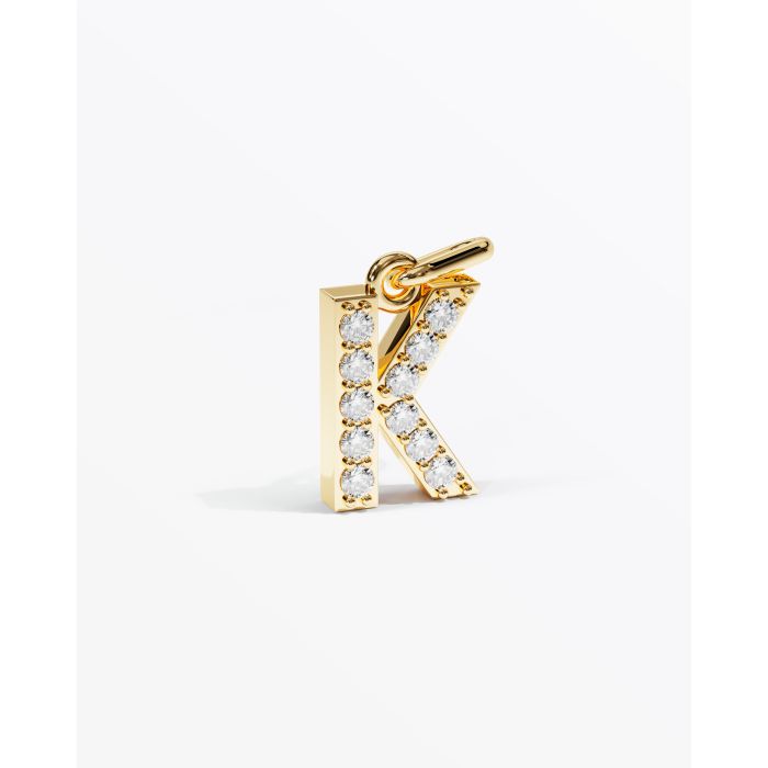 Letter K with 11 stones. All stones can be designed individually. Stone size is 1.5 mm. The height is 10 mm. Depth is 2.6 mm.