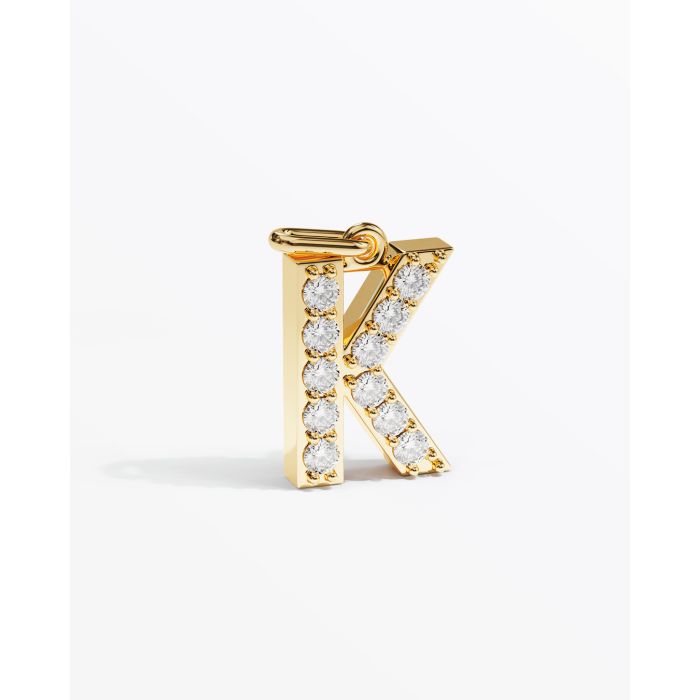 Letter K with 11 stones. All stones can be designed individually. Stone size is 2 mm. The height is 15 mm. Depth is 3.5 mm.