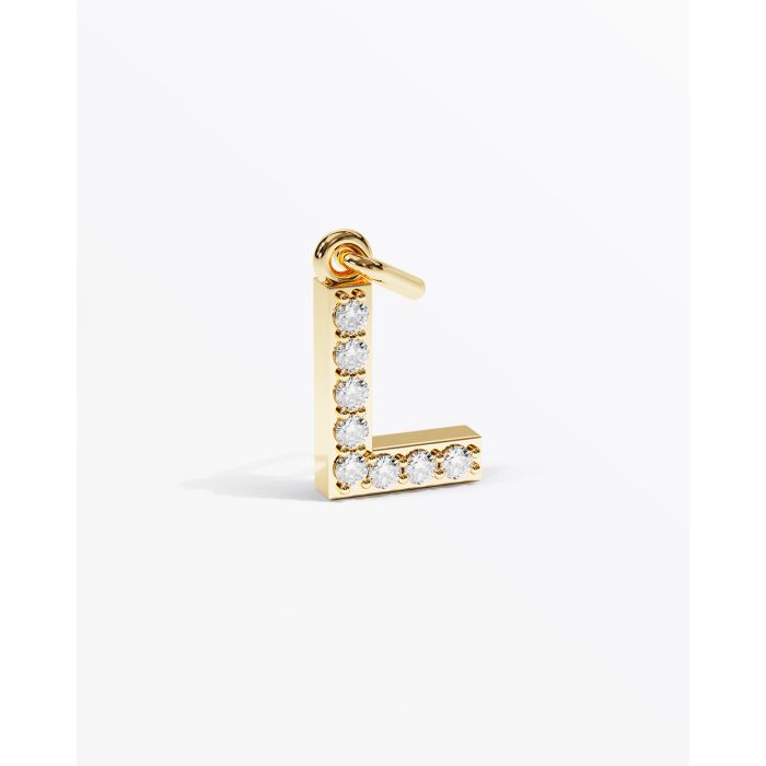 Letter L with 8 stones. All stones can be designed individually. Stone size is 1.5 mm. The height is 10 mm. Depth is 2.6 mm.