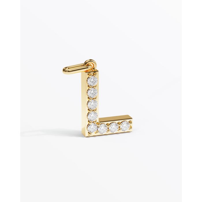 Letter L with 8 stones. All stones can be designed individually. Stone size is 2 mm. The height is 15 mm. Depth is 3.5 mm.