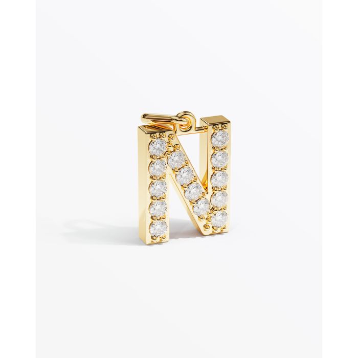 Letter N with 14 stones. All stones can be designed individually. Stone size is 2 mm. The height is 15 mm. Depth is 3.5 mm.