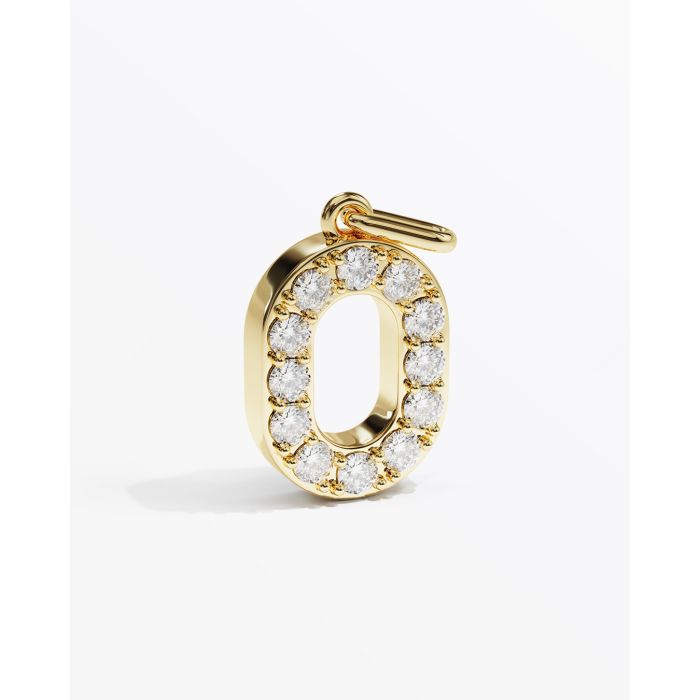 Letter O with 12 stones. All stones can be designed individually. Stone size is 2 mm. The height is 15 mm. Depth is 3.5 mm.