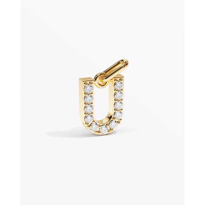 Letter U with 11 stones. All stones can be designed individually. Stone size is 1.5 mm. The height is 10 mm. Depth is 2.6 mm.