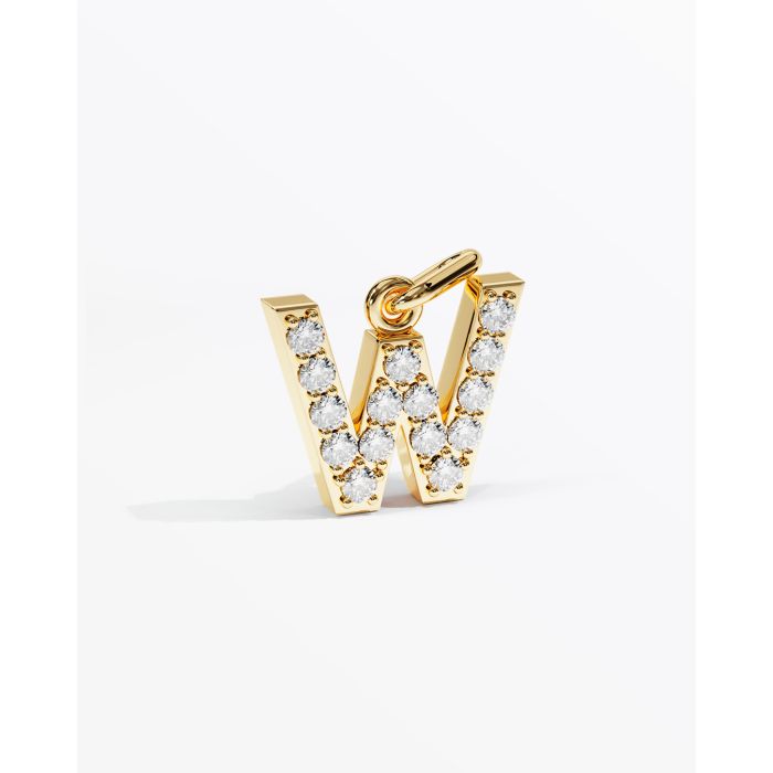Letter W with 15 stones. All stones can be designed individually. Stone size is 1.5 mm. The height is 10 mm. Depth is 2.6 mm.