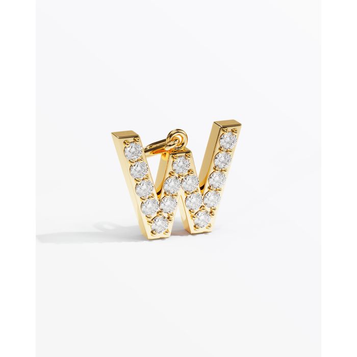 Letter W with 15 stones. All stones can be designed individually. Stone size is 2 mm. The height is 15 mm. Depth is 3.5 mm.