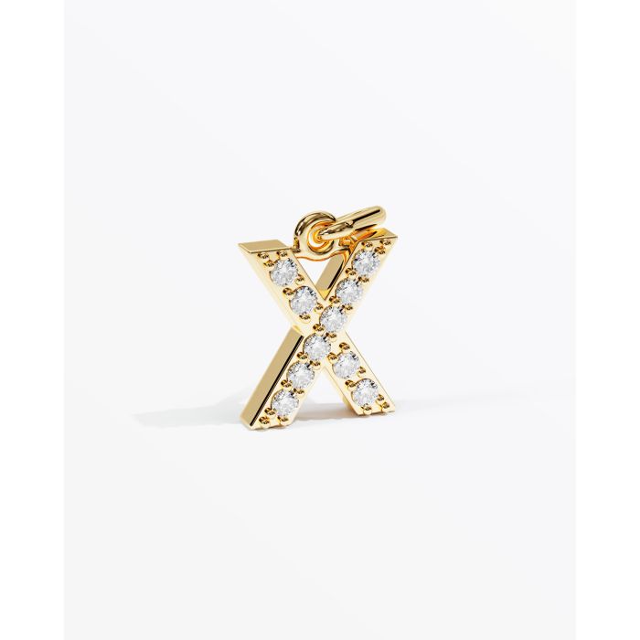 Letter X with 10 stones. All stones can be designed individually. Stone size is 1.5 mm. The height is 10 mm. Depth is 2.6 mm.