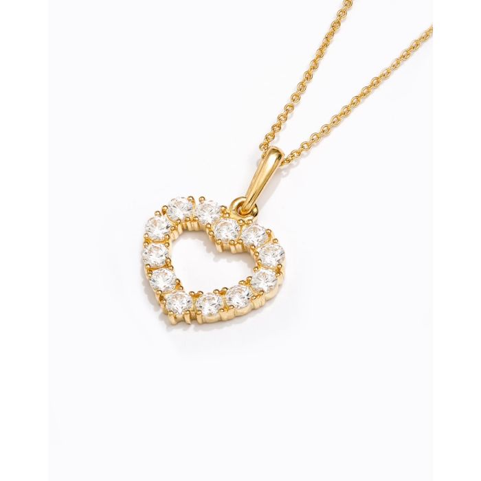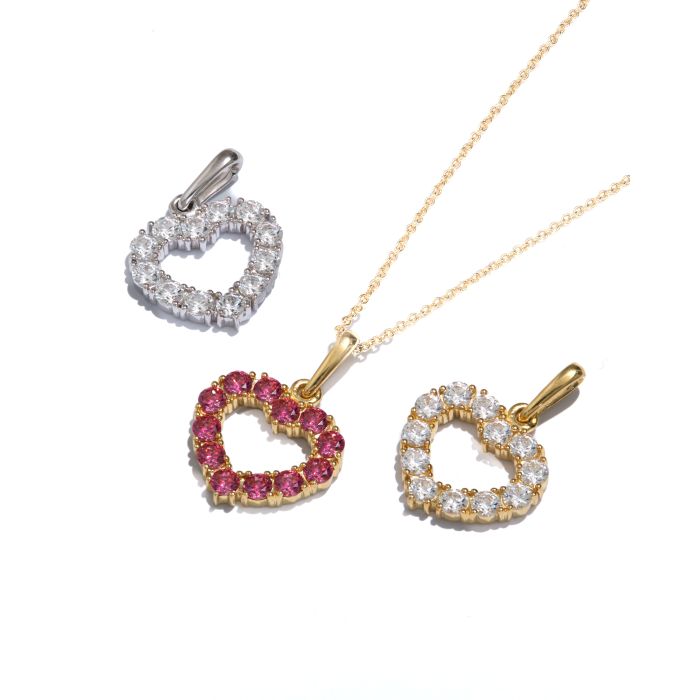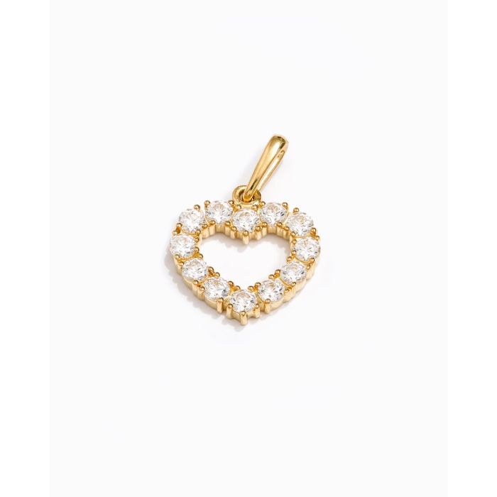Et elegant vedhæng, hvor 12 sten danner formen af et hjerte. Hver sten har en størrelse på 2,5 mm og er fastholdt af detaljerede krabber, der er med til at forme vedhængets udtryk. Et tidløst smykke, der udstråler kærlighed og skønhed. Vedhænget har en højde på XX mm, en dybde på XX mm, og bredde på XX. Det hjerteformet vedhæng kan løfte din personlige smykkesamling eller gives som en særlig gave.