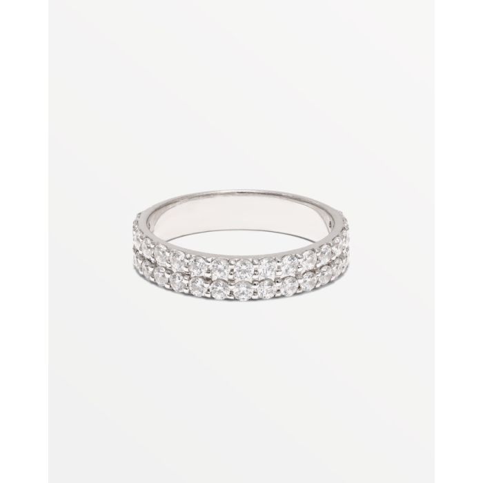 Ring with 34 stones divided into 2 rows of 17 stones, which fill a little over half of the ring.
